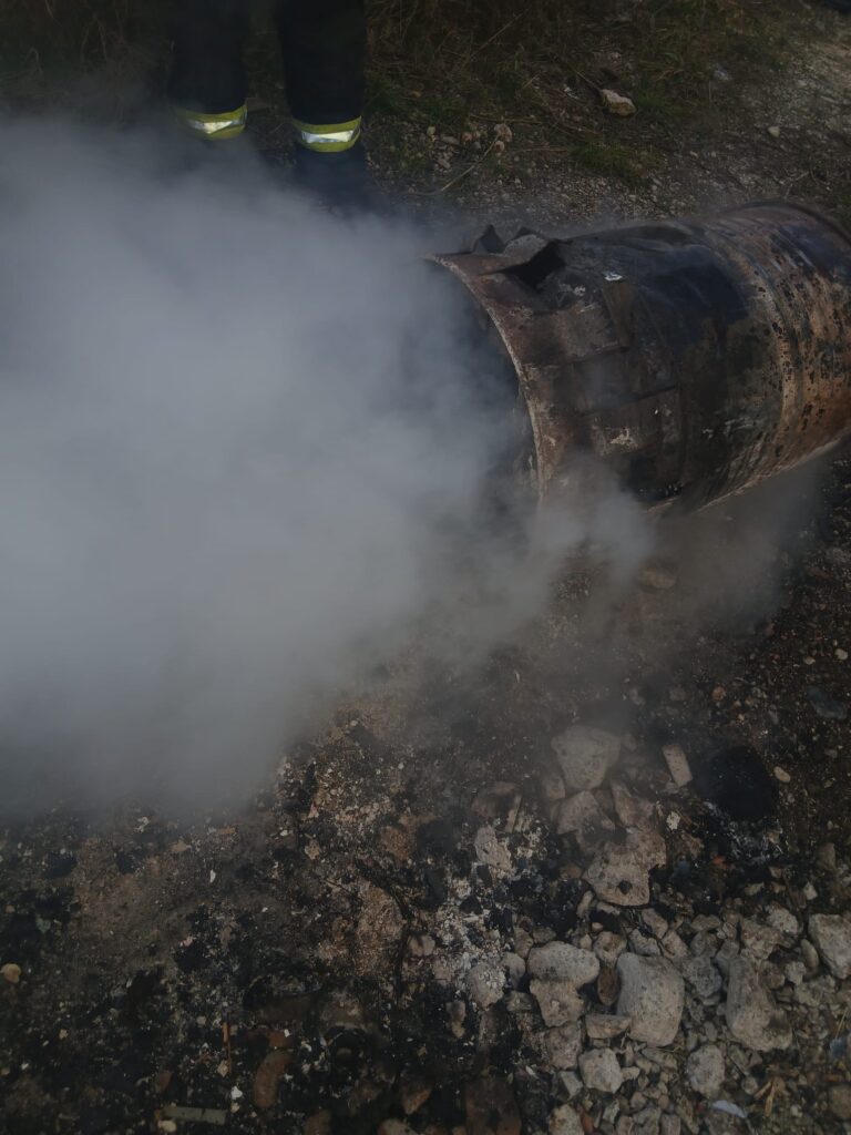 Beim Eintreffen stellte sich heraus, dass es sich um ein Fass mit Müll handelte. Kurz darauf hat der Besitzer den Brand selbstständig mit einem Feuerlöscher abgelöscht. Wir halfen beim Ablöschen der Glutnester um eine erneute Entzündung zu verhindern. Nach rund 45 Minuten konnte der Einsatz beendet werden.