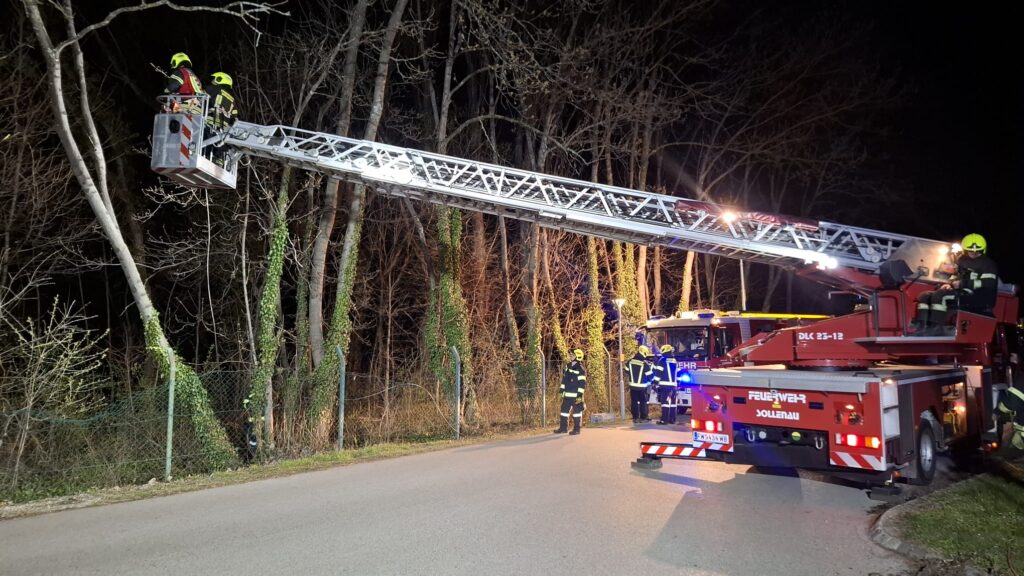 Während unserer Besprechung der Wettkampfgruppe wurden wir von der Feuerwehr Haschendorf zu einem technischen Einsatz nachalarmiert. Da ein Baum drohte auf eine Telefonleitung sowie eine Straße zu stürzen, wurde er mit der Drehleiter stückweise und kontrolliert abgetragen. Die Zusammenarbeit zwischen den beiden Feuerwehren funktionierte reibungslos und der Einsatz konnte rasch und sicher abgearbeitet werden.