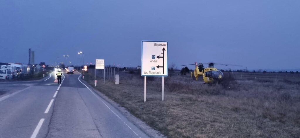 Am Abend wurden wir erneut alarmiert – zunächst zu einem Verkehrsunfall, der während der Anfahrt auf die Alarmstufe T2 erhöht wurde. Zeitgleich befand sich der Notarzthubschrauber bereits im Anflug.